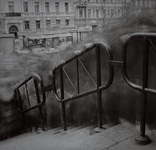 I recently discovered the photography of Russian artist Alexey Titarenko, and I am absolutely taken aback by the bizarre effects he achieves with extended exposure. Capturing spans of time rather than momentary snapshots, Titarenko creates a blurry, monstrous mass out of his photographic subjects. These remind me of Victorian spirit photographs, with spectral blurs and ectoplasm oozing a melding with human forms. His work, particularly his series entitled "City of Shadows," quite literally give me chills...